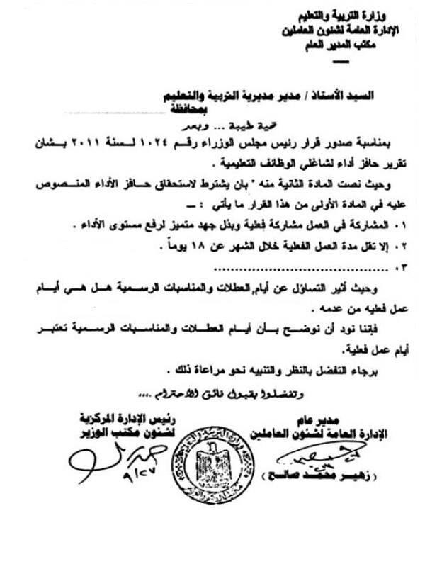 مستند ننشر شروط صرف حافز 1000 جنيه لمعلمي 2 ابتدائي وموجهي النظام الجديد