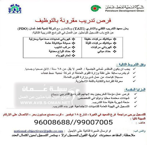 شبكة وظائف عمانية On Twitter الخميس 5 5 2016 معهد التدريب التقني والاداري Tati بالتعاون مع Pdo فرص تدريب مقرونة بالتوظيف